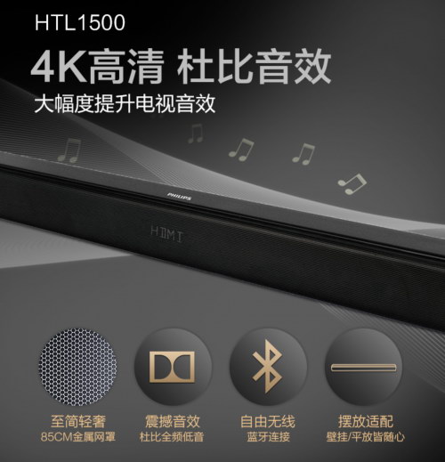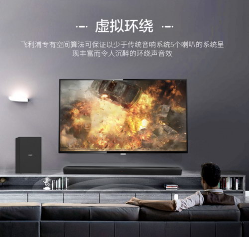 靓声系列作为进阶产品,则更加专注于小户型家庭的需求,身居北上广等一线城市,但是生活起居的狭小空间,即使配上超大高清的电视,但是听歌、观影的临场感、声效对于这种互联网电视来说是遥不可及的,但配大型音响系统在有限空间面前又显得不现实。在这种情况下飞利浦靓声系列便应运而生了,靓声系列利用飞利浦专有的空间算法,保证以少于传统音响系统5个喇叭的基础上依旧能产生令人沉醉的环绕音。它的存在感可高可低,功能很强大,占地非常小,首先,它在使用过程中存在感很强,看电视,放音乐,蹦迪、聚餐都会更过瘾;其次,关掉它,它就是薄薄一条挂在墙上,完全不占空间,存在感很小; 成为了小户型家庭的Soundbar首选。