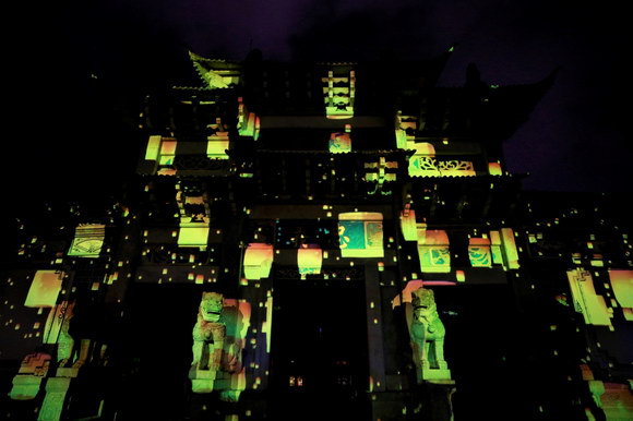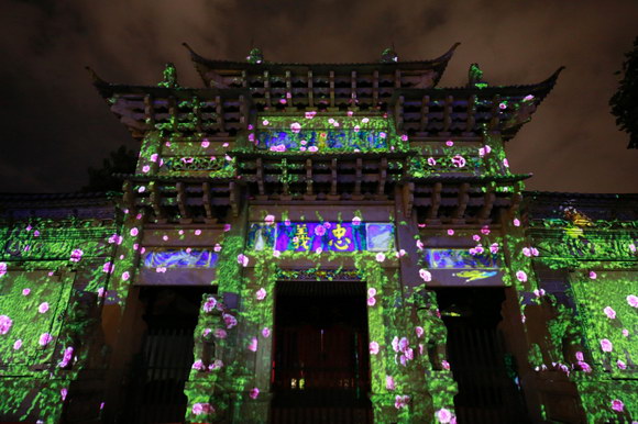图一:由Vivitek(丽讯)激光投影机DU9800Z带来的木府3D灯光秀