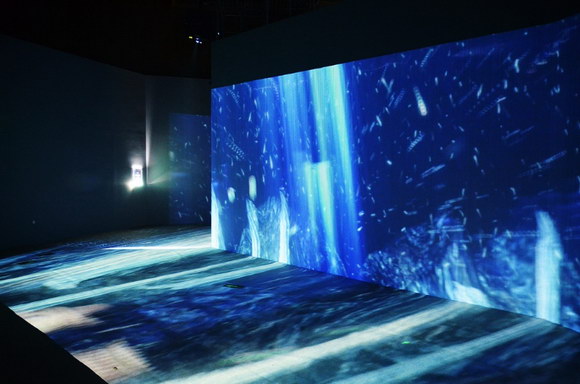 去年由日本新媒体艺术团队打造的某海洋主题新媒体艺术展,就是一场多媒体“C位出道”的艺术展,全场共使用24台明基激光高亮工程投影机,缔造广袤无垠的深海世界,让观者炎炎夏日感受蔚蓝海洋的清凉。