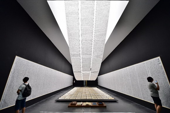 同样在UCCA尤伦斯艺术中心举办的,艺术家徐冰四十年创作历程大型回顾展“徐冰:思想与方法”,为了呈现一幅动态水墨长卷,3台明基激光投影机拼接融合无缝铺开,点亮一整面墙,艺术家所要传达的《汉字的性格》跃然纸上。