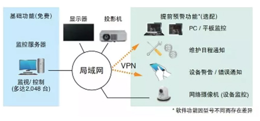 松下激光光源投影机PT-BMZ\BMW系列适用于松下投影机配置的多台投影机监控免费软件,老师们可通过局域网使用一台电脑同时监控最多2048台投影机,实时了解投影机状态,控制调整投影机执行情况,减少了老师们在放学后、暑假期间对于投影机设备监控维护的人力与时间成本,实现远程高效管理。