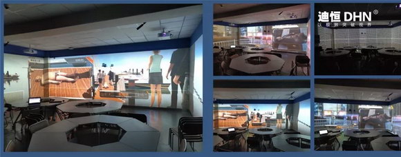 折幕画面有较强的层次感,因为折幕投影离不开边缘融合技术,通过融合技术对重叠部分的画面进行处理后画面的亮度以及分辨率都提高了,因此整个画面的层次感都变强了。迪恒(DHN)为政企医疗实行了定制化解决方案,将多变、不规则的画面组合在一起,展示出一幅完整的画面,可以适用于各种各样的环境,适应性很强。
