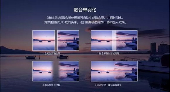 迪恒(DHN)融合功能,可实现多通道的画面融合,用于平面,曲面和圆柱形银幕边缘融合,满足多种应用场景及各大高校等多种市场应用领域。