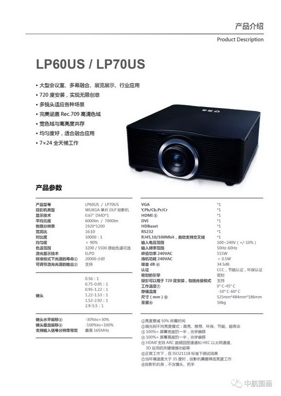 LP70US激光工程投影机的优势特点是高性价比、均匀性佳,多台融合方案可运用于酒店、展览展示,甚至高端家庭影院,是低投入高回报的优质方案。