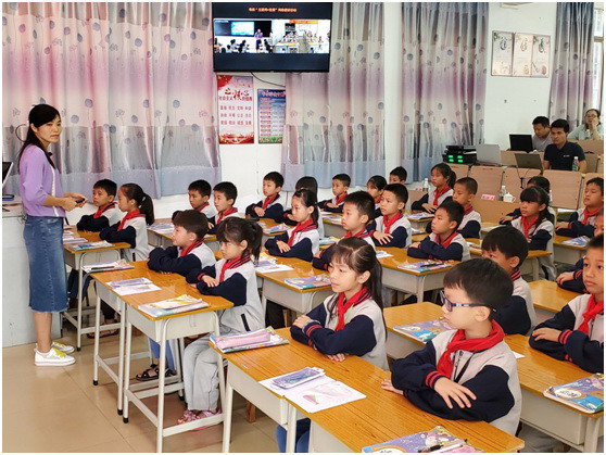 来自广西柳州的优秀教师团不远千里,来到广东肇庆市洽水镇中心小学,在课堂上声情并茂地为学生授课演讲,向当地的教学团队们展示了新颖的分组授课、启发式学习等教学模式,台下学生们排排坐,正享受着老师带来的美妙的学习时光。