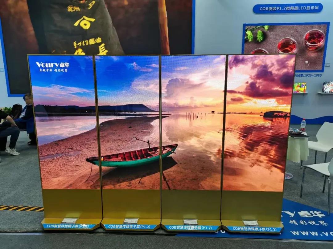 Voury卓华作为业界业界领先的大屏幕显示及拼接控制整体解决方案提供商,本届展会主打应用场景现场模拟,现场共展出包括SMD金线封装LED显示屏、COB封装LED显示屏、倒装COB显示屏、智慧传媒镜子屏等在内的多套拼接大屏幕。Voury卓华有多套显示屏分别模拟不同应用场景进行展示: