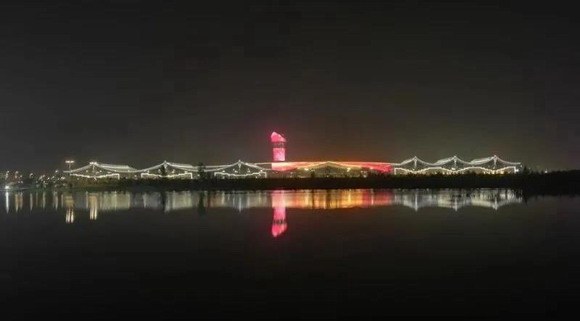 夜色中远远望去,会展中心的灯光倒映在滹沱河面,犹如华丽大气的巨幅画卷徐徐展开,美轮美奂。