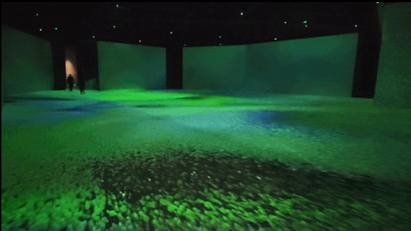《图腾密码》展项采用6台Vivitek(丽讯)RU70983工程投影机,独创写意的远古动画影像从墙面覆盖至地面,生动还原5000年前的上古生活场景。而在场景之中,放置着形态各异的大小彩陶瓶,最为瞩目的当属人头型器口彩陶瓶,以人头像及抽象的线条结合,诗意的诠释中华文明最为古老的彩陶文化。