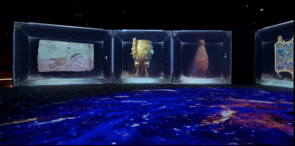 在动态影像及多媒体互动装置的共同呈现下,9件珍异国宝,重新演绎成9段完整的故事,缓缓诉说五千年华夏文明。当古老的传统文化与现代多媒体影像不断融合,让每一件曾高高在上的国家宝藏活灵活现的走到我们身边。借助Vivitek (丽讯)工程投影机的卓越呈现,一幕幕还原了原始生活、古人智慧、传统工艺等悠久而风趣的文化现象,为我们探索、理解中华古国文明提供了无限的可能。