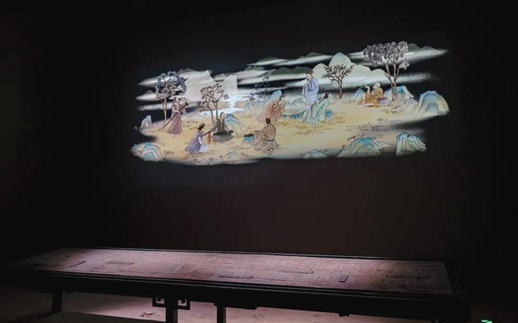 利用独特设计的立体拼图装置,观众通过让砖块复位的形式,点亮八位贤士的动态影像,以此引导观众在亲身参与中直观体会砖画的构造形式和制作工艺,同时感受东方语境里的生命节序。