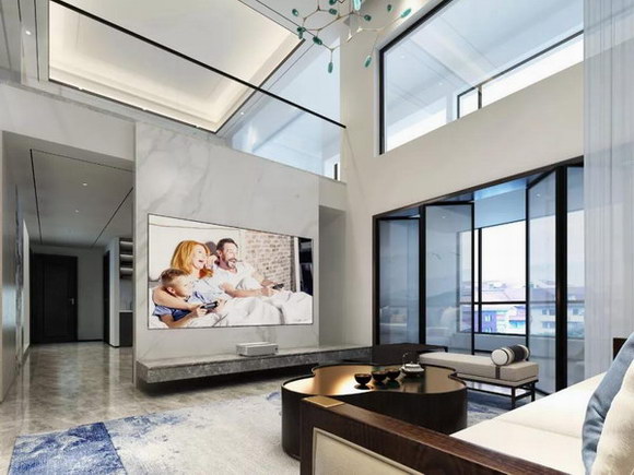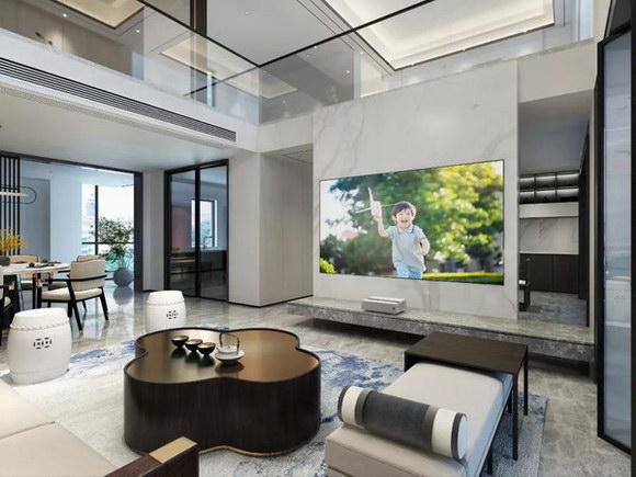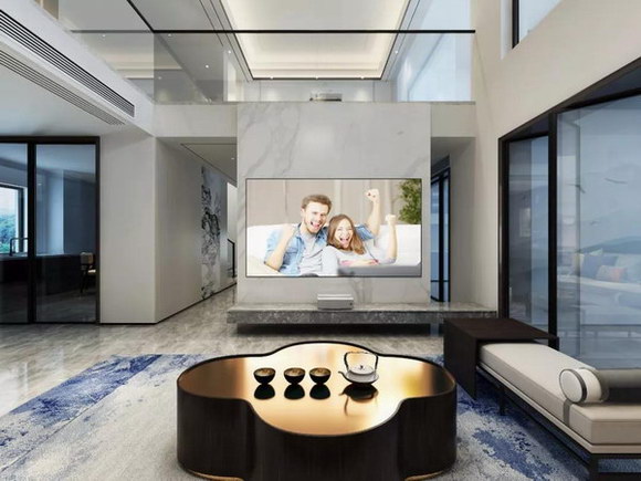 因为对于不少消费者而言,客厅背景墙其实并不仅仅是一面墙的设计,他们更注重的是设计带来的生活品质的提升。传统液晶电视植入客厅背景墙的设计方案显然已经不能满足娱乐信息化时代下大家对于影音需求的急速扩大,小液晶电视装在背景墙上达不到用户想做高端客厅影院的需求。
