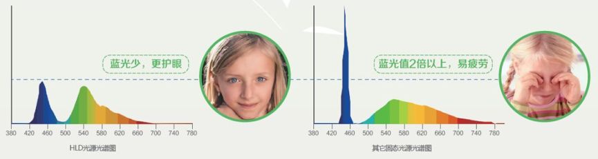 HLD固态光源蓝光值明显更少 更护眼