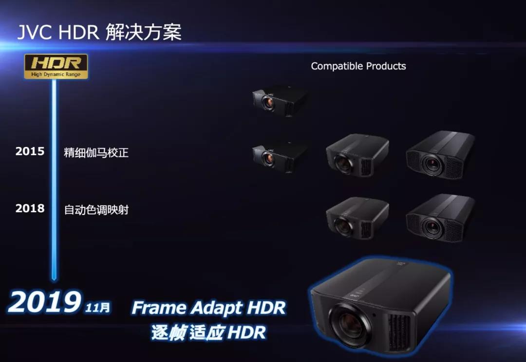 JVC 刚刚发布的 “逐帧适应HDR”(Frame Adapt HDR) 全新功能(LEO系列固件升级),自动分析4K HDR电影每帧画面的亮度,自动匹配每帧画面的HDR图像参数,可以兼容所有HDR10内容。“逐帧适应HDR”实现了4K HDR“画质”和”易用性”的革命性升级,让“LEO”(狮子座)系列N11/N8/N6如虎添翼。目前“逐帧适应HDR”(Frame Adapt HDR)已经口碑爆棚,被称为“4K HDR神器”!