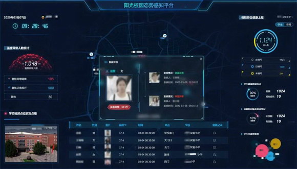 有别于传统的人工测温方式,该套人脸测温识别设备还和现有保卫处的安保系统进行了联通,对进出学校人员信息实时记录,包括进出时间、进出地点、人员姓名、人员温度、联系方式等关键数据。[2]
