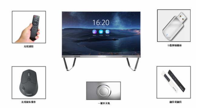 安卓8.0以上操作系统、亮度多种方式智能调节、遥控等无线操作、视频会议、互动书写。