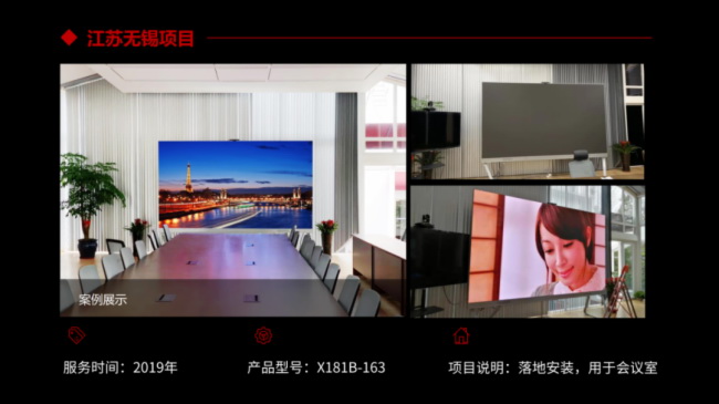 80~150㎡空间的中大型会议室可采用Huboard 135吋或163吋会议屏,可用于商务洽谈、董事会议、视频会议和培训交流等场景。