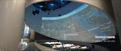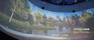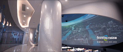 环抱沙盘的弧幕上水流织就五镇经纬蓝图,环抱式的空间设计以大视野、宽广角、宏大震撼的视觉效果营造强烈的沉浸氛围,引领我们畅想水乡发展的美好前景。