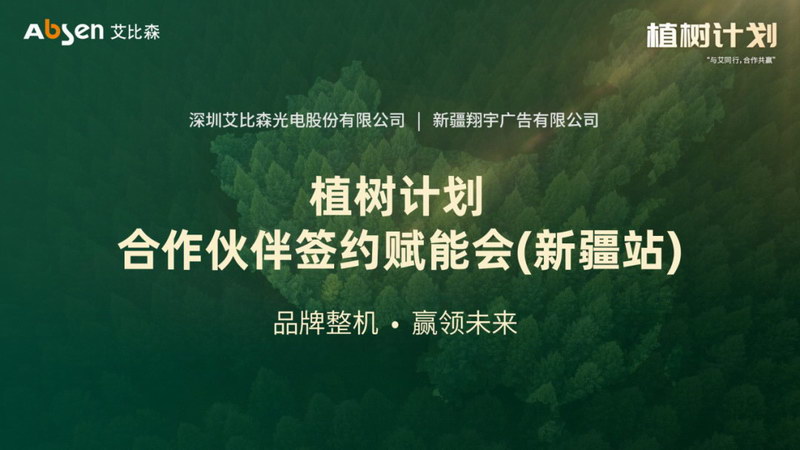 经销渠道签约仪式新疆站仅仅是一个开始,也是艾比森“植树计划”其中的一站。现艾比森全国省市渠道招商火热进行中,希望更多价值观和文化认同的合作伙伴加入艾比森,成为艾比森志同道合的事业合伙人,聚木成林,共同构建一个共生长、谋共赢的绿色生态圈,引领行业发展。