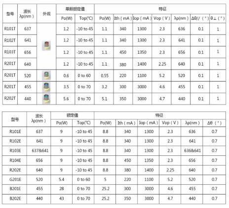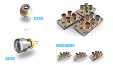 采用RGB半导体激光器,以及光纤耦合或空间耦合技术,实现不同波长混合的白光模块或单色激光模块,覆盖了输出光功率范围从2.8W~160W,色彩可自由组合叠加的一系列产品,满足可见光在显示、照明、工业等领域的不同需求。