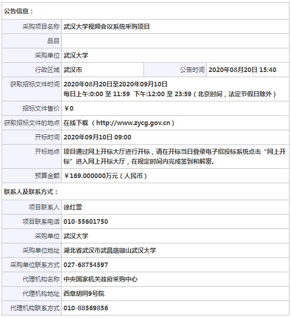 获取招标文件地点: 在线下载 (http://www.zycg.gov.cn)