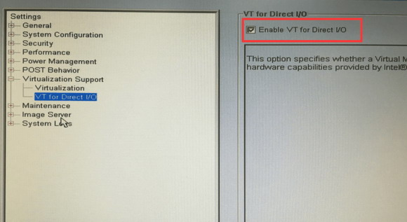 (1)第一步先设置服务器端配置。服务器端上的Virtualization Support 接口必须打开,否则该主机上的PCI设备无法被客户端访问,也就添加不了采集卡。Virtualization Support 是在主机BIOS系统里面设置的,要确保Virtualization和VT for Direct I/O选项都被打开。如图1和图2所示。
