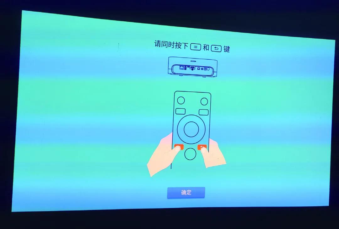我们前面提到过,宝视 来A1H- W仅机身搭配了一个电源按键,为了方便用户操控,它还配备了一个蓝牙遥控器。相比红外遥控器,蓝牙式只要在固定的空间范围内都能操控,不需要像红外式那样需要对准接收器。遥控器的按键布局很简洁,功能一目了然,与很多网络机顶盒遥控器类似。可以看到在遥控器中心还有一个语音按键,是的,宝视来A1H-W支持通过用遥控器语音控制,使用更加方便。在初次使用时需要遥控器与投影机配对,遥控器背部有配对使用说明,同时按住菜单键和返回键等待配对成功即可。
