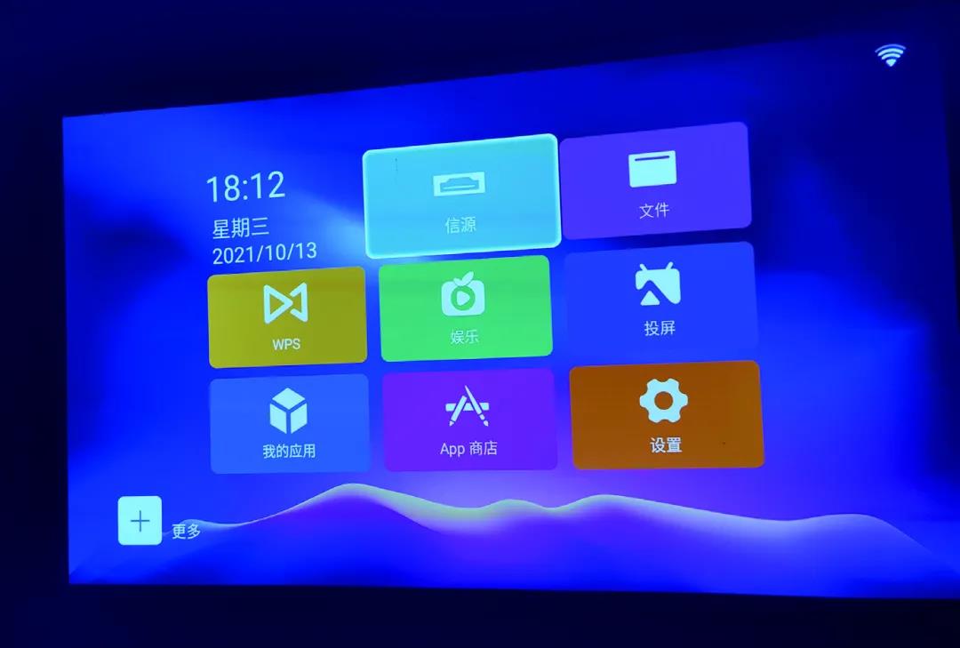 目前市面上的智能投影机不论是家用还是商用,无一例外都采用的是Android操作系统,宝视来A1H-W同样如此。它采用的是基于Android 7.1版本的操作系统,系统界面很简洁,九宫格的界面布局,不像家用投影机系统界面那样主要是影视画面。在系统界面上可以看到宝视来A1H-W的系统界面上搭配了WPS,打开后可通过手机上的WPS扫一扫投影机上的二维码即可将手机上的文档投射出来。此外,它还专门内置有“投屏”功能,点开后可以看到它采用的是乐播投屏,使用同样简单,手机上只需要下载相应投屏软件,然后输入投影机上的投屏码即可连接。该投屏应用除了能支持手机投屏外,还支持电脑投屏。该投屏应用也考虑到了具体的使用场景中可能涉及用户的隐私情况,比如在投射手机上的视频、图片等文件时,它不会将手机上的所有文件都显示出来,只有将选中的投屏文件投射出来。同时,在切换投屏文件时,屏幕上会自动切换到隐私模式,确保手机上隐私信息不会被公之于众。