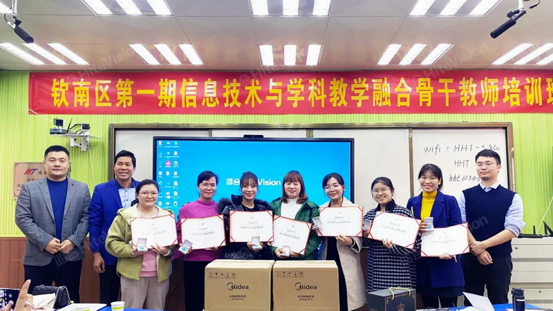 为了线上线下深入融合,提升教师教学素养和专业成长能力,提高课堂实践与理论相结合能力,加强教师学与用,研与磨的教学实践能力,1月初,鸿合科技在广西壮族自治区钦州市人和小学和环江县思源实验学校小学部陆续开展了两场鸿合信息化骨干教师线下研修活动。