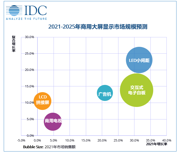 2021年中国商用显示大屏市场规模预计增长超22%,LED小间距和交互式电子白板将成为市场重点