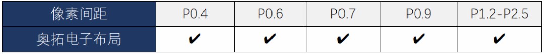 表注:截止2020年2月,奥拓电子布局了P2.5-P0.4市场(行家说根据公开信息整理)