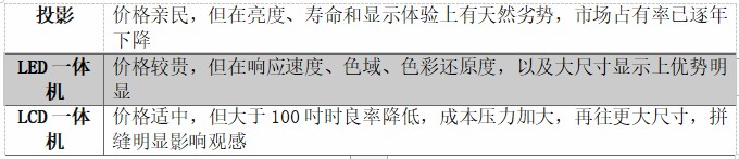 此外,值得一提的是,虽然目前 LED一体机的优势在100吋以上,但随着Mini/Micro LED技术的不断成熟和成本随之下降,未来,LED会议一体机将有机会进入110吋以下的会议场景,往82吋、75吋甚至更小尺寸发力。如若采用前文所提的像素间距0.4mm LED显示屏,4K一体机可以下探到70吋,前景广阔。