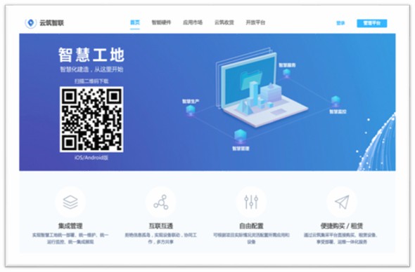 “云筑智联”是智慧工地物联网智能建设管理平台,充分应用物联网、BIM、云计算、移动关联网、GIS、大数据、人工智能等技术,通过场布、进度、材料、设备、质量、安全、环境的管理应用,能够有效实现施工现场可视化管理、精益化管理。截至目前,平台已上线项目7012个,企业用户8209家,接入设备数量49926台。