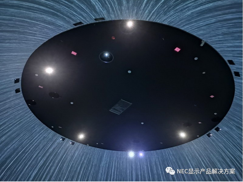 “飞流直下三千尺,疑是银河落九天”,大诗人李白描述的壮美奇景在这里“真实”再现。宛如蛋壳的球幕展厅里,巨型瀑布倾泻而下,似银河从天而降,并在地面迅速汇聚成河,波光粼粼、浩瀚无垠,令观者赞叹不已。得以呈现如此雄伟壮观的瀑布奇景,离不开20台NEC 4K激光投影机PX1005QL-B+的精彩演绎。巨型碗幕直径15.4米,高度5.9米,20台NEC PX1005QL-B+通过隐藏式安装,采用融合拼接的方式,分别在近百平方米的弧形墙面和圆形地面上进行投射,打造沉浸式互动投影,将观众带到“广阔无边”的水世界中,感受瀑布飞流直下的壮丽美景。