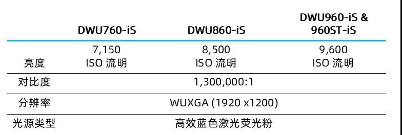 该系列有多种亮度可供选择:7,150/8,500/9,600 ISO 流明,支持 WUXGA 分辨率,为众多应用带来明亮画面。长效激光光源使 Inspire 系列实现 20,000 小时低维护运行。