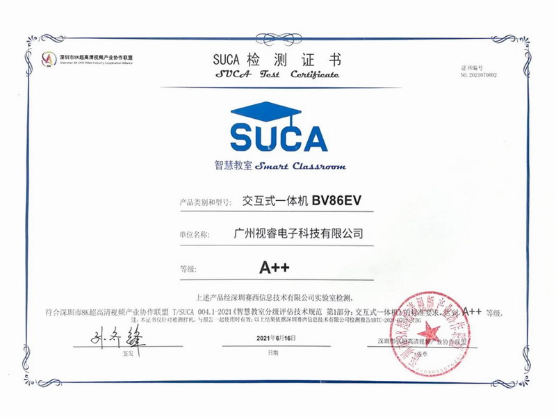 喜讯!希沃参与行业智慧教室标准拟订,两款交互式一体机获SUCA联盟“A++认证”