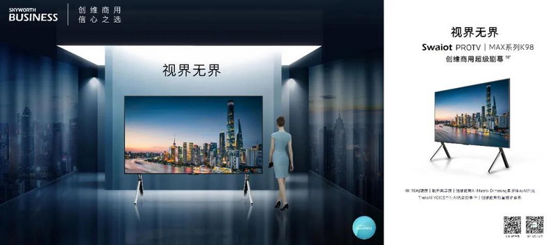 针对大屏制造面临的一系列难题,创维商用以不断革新的技术逐一解决,满足商业伙伴对大屏显示的需求。Swaiot PROTV|MAX系列K98的推出,有效助力更高效的大型会议和信息演示场景,为商业运营带来更高清、更优质的大屏选择。