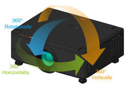安装灵活,投影机可在多种、不同的环境下安装使用。由于采用激光光源,机器内部发热量低,内部散热系统经过特殊处理,支持360°自由方向安装和投影。
