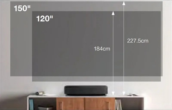 0.16投射比超短焦光学镜头与4000流明高亮度,实现150英寸超大屏显示