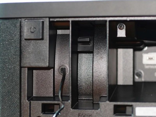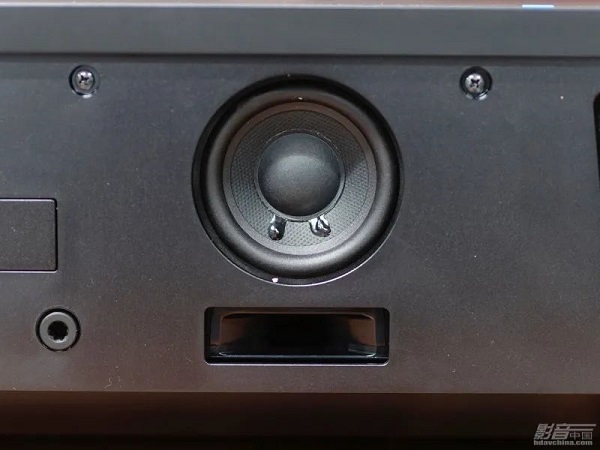两个主声道扬声器单元被专门设计在机身前方左右两端,并且采取一定程度的左右扩散角度,以获得更为宽广的声场覆盖范围