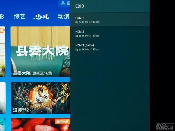 三个HDMI接口均能支持最高4K/60Hz 18Gbps传输速度的超高清信号输入