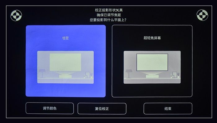 一般来说,激光电视需要专业的画面校正,才能获得平整准确的效果,用户需要繁琐地反复调试画面平整与四角清晰。爱普生EH-LS800大大简化了调整过程,用户可以通过APP辅助调整、多点校正等方式轻松、高效率的获得完美画面。用户只需要跟随屏幕上的引导提示,一步步操作就能选择模式,进行基础设置,完成画面调校。
