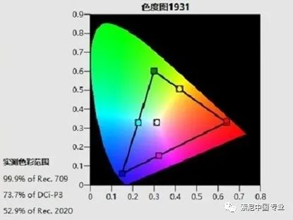 (4)色彩校准:SDR模式选择Rec.709色彩空间,默认色彩有偏差但不大,校准后色域、色彩饱和度达到接近100%标准,对于采用激光光源的机器来讲,十分出色!