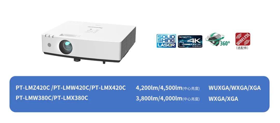 松下激光LM系列的激光光源寿命约20,000小时;高效过滤网可有效阻挡粉尘侵蚀,实现15,000小时免维护;大幅削减设备维护成本。最大功耗240W,更省电、更环保;支持4K信号输入,视频格式无需转换。帮助老师们轻松应对新学期挑战!