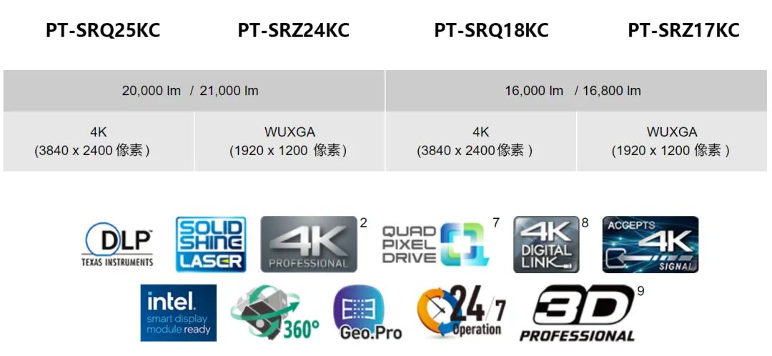 松下PT-SRQ25KC系列使用3DLP芯片和SOLID SHINE 激光光源成像技术,色域广阔、色彩还原精准、对比度高、显像卓越。得益于激光光源的特性,万千色彩不仅绚丽真实,还能够保持色彩和亮度的长久稳定输出。