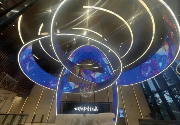 可由洲明的常规LED软模组和扇形LED软模组拼接而成,整个造型独树一帜。