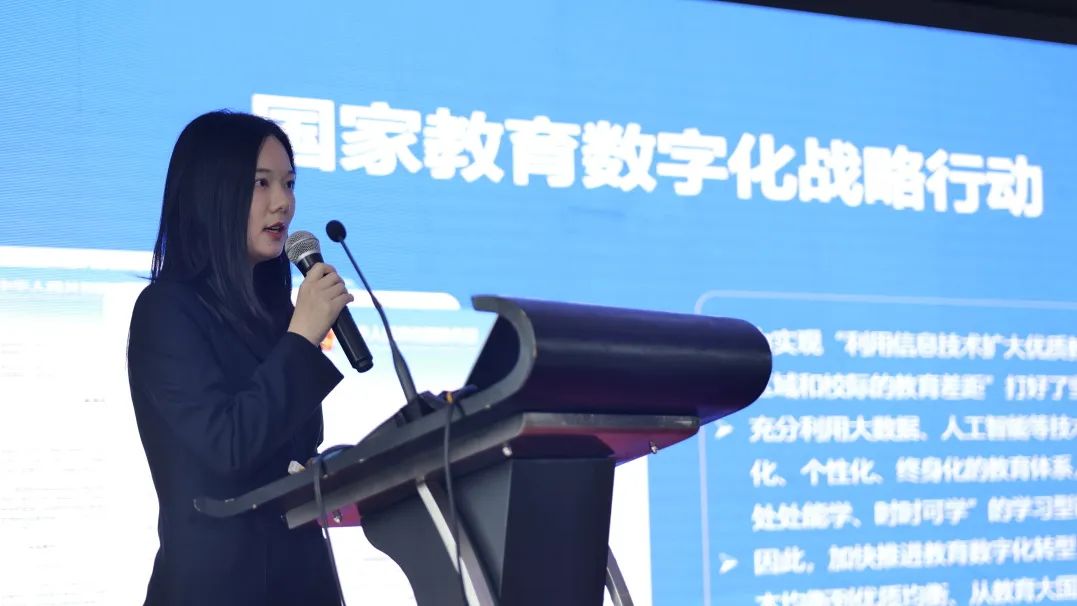 陈小丽书记以“华中科技大学教学环境建设及思考”为题作主旨报告。她以华中科技大学的智慧教学环境建设为例,探讨数字化转型的背景下,如何以应用驱动为核心,打造线上线下相结合的智慧教学环境。