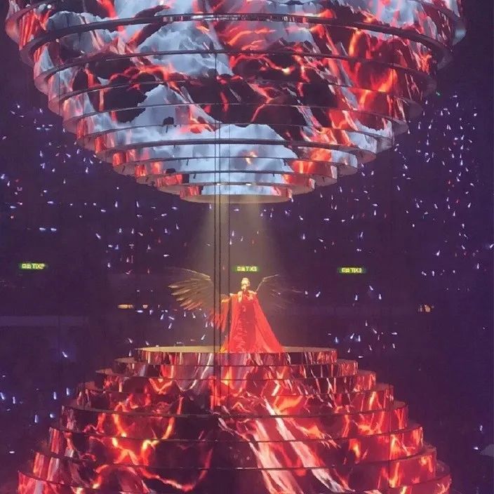 深圳市鑫彩晨科技有限公司在香港红磡体育馆为演唱会提供的产品是软模组P4产品,为软模组系列240mmx120mm的规格,艺术造型为异形,面积300平方米,在演唱过程中,顶面和地面LED显示屏结合的造型设计会根据演唱节目变化而有所不同,画面视觉呈现一个整体的效果,使观众360°全视角观看,为演唱会提供一个精彩难忘的视觉盛宴。