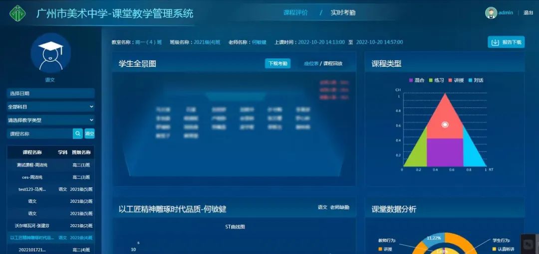 在锐取集控中心中,老师教学效果数据化呈现,学生考勤、上课情况可视化呈现,全方位、更客观、更精准地反映出师生实际能力和课堂授课效果,从多维度呈现课堂的不同特质和优缺点。