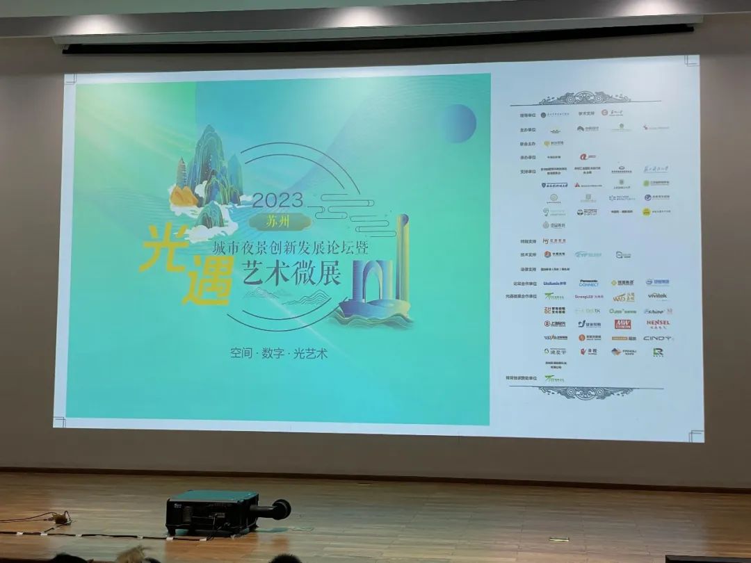 在20日举办的“城市夜景创新发展论坛”上,一台21,000流明(中心亮度)松下PT-SRZ24KC工程投影机投射出300寸主屏画面,助力演讲嘉宾聚焦全场目光。