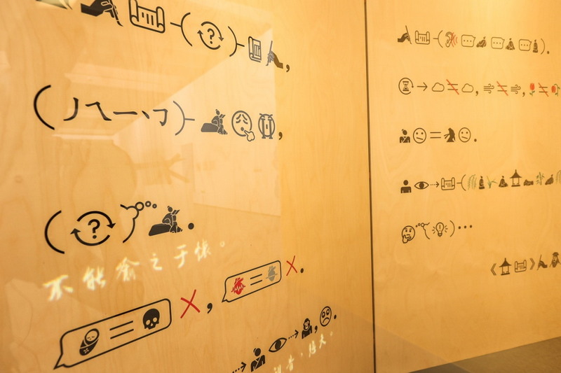 展览现场,光影交互作品《读图的基因》以令人耳目一新的互动方式,讲述甲骨文与今天汉字的互读互解。观众通过指尖轻触展柜,触发汉字译本,数台NEC李白短焦系列激光投影机让图形与文字透过光影,逐字逐句展现文字艺术之美的同时,仿若跨越历史长河,将流传数代的象形文字定格,唤醒人们对于传统文化的关注,让古老文明智慧照鉴未来。